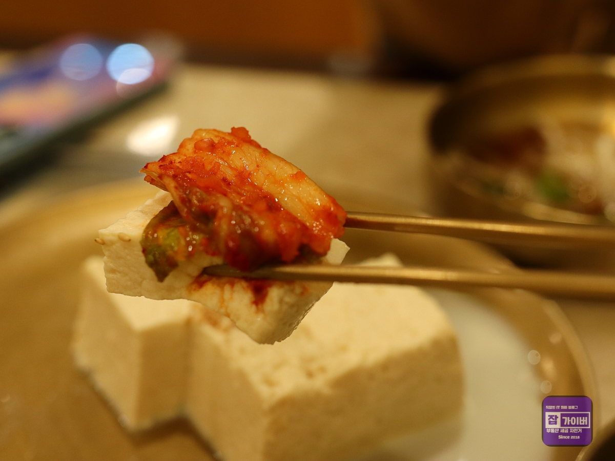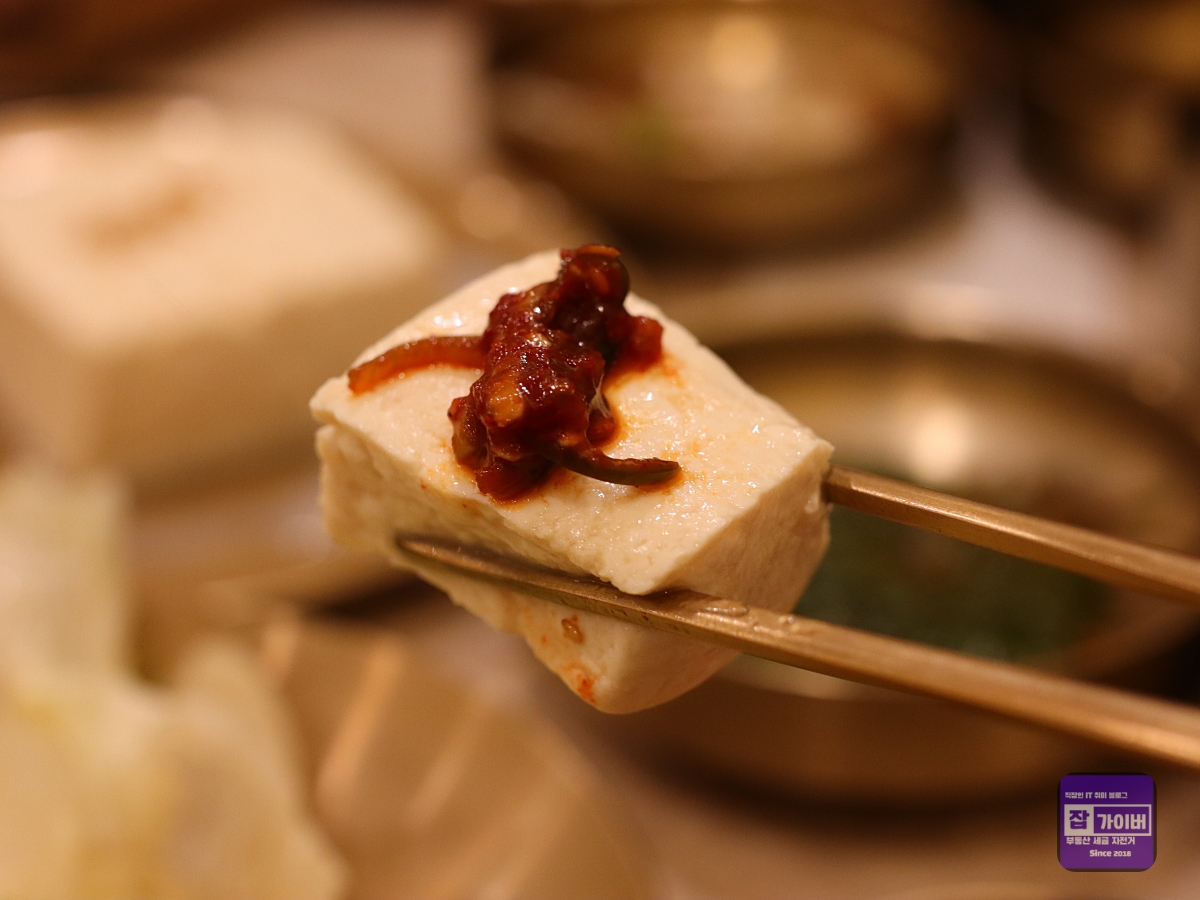 손두부는 부드럽고 고소한 맛이 입 안에서 부드럽게 퍼져요. 양념장과 함께 먹으면 더욱 맛있지만, 저는 담백한 두부만 먹어도 충분히 만족스러웠어요. 두부의 고소함이 그대로 살아있어 그 자체로도 훌륭한 별미였죠.