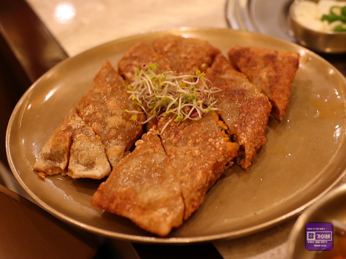 갓 부친 메밀전병은 담백한 메밀 피에 매콤한 소가 듬뿍 들어있어서 맛의 균형이 정말 좋았어요.