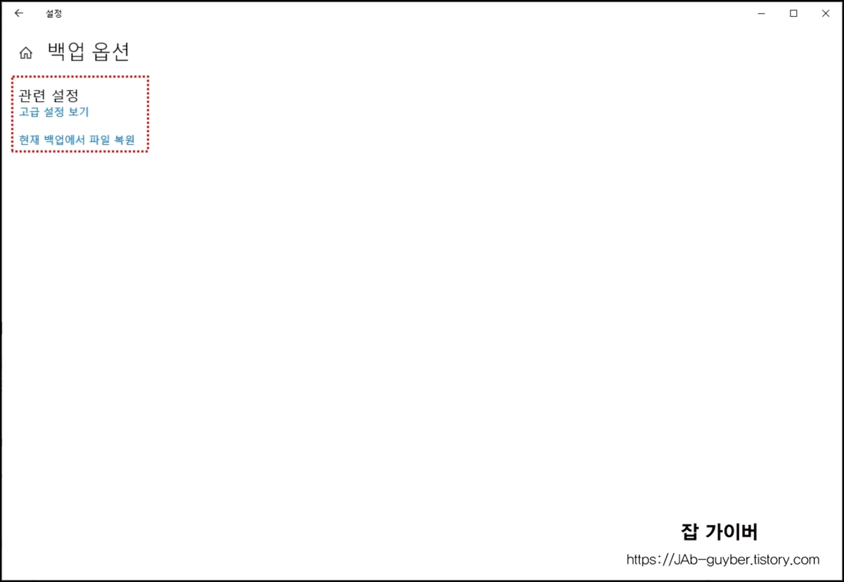 윈도우 백업 옵션에서는 고급설정 보기를 이용합니다.