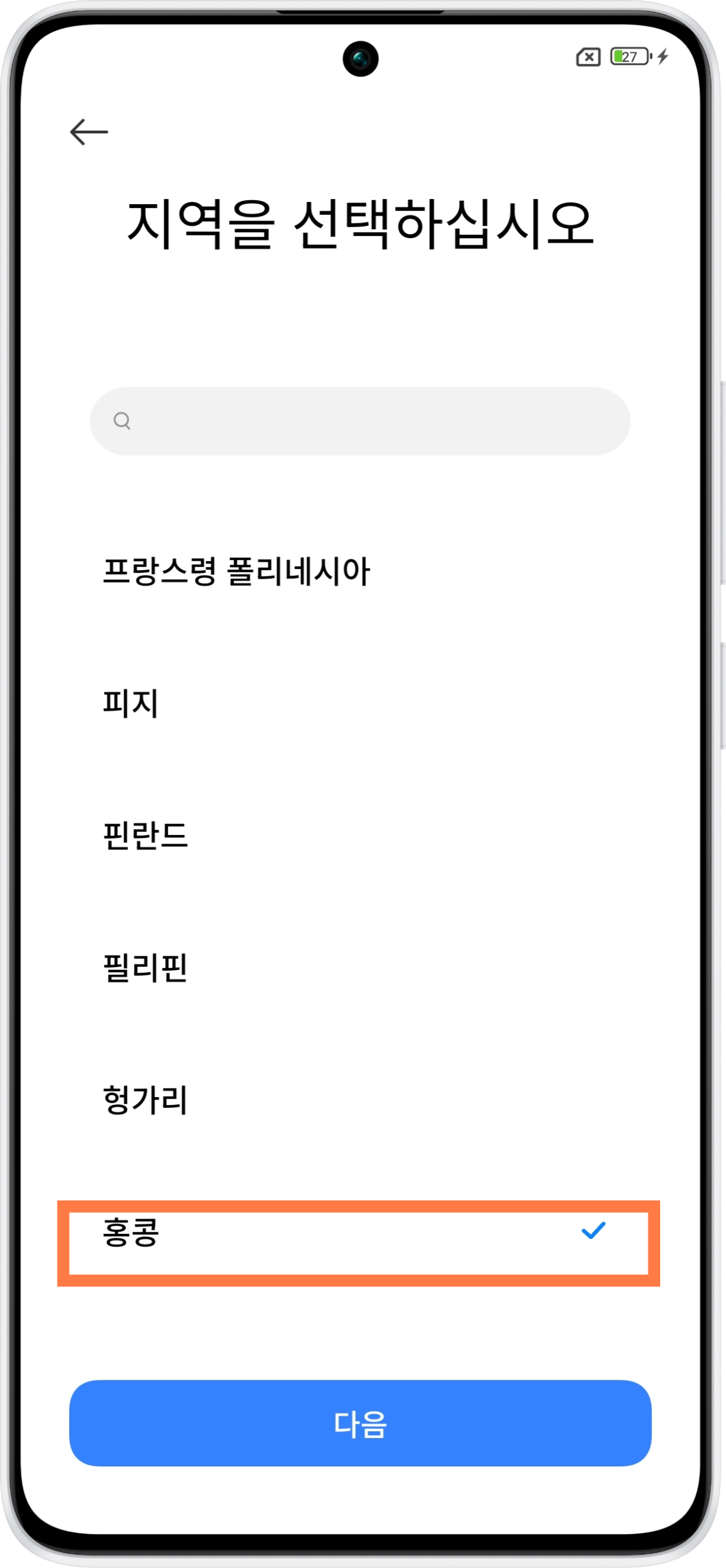 3️⃣ 초기 설정 시 ‘지역’을 ‘홍콩’으로 선택