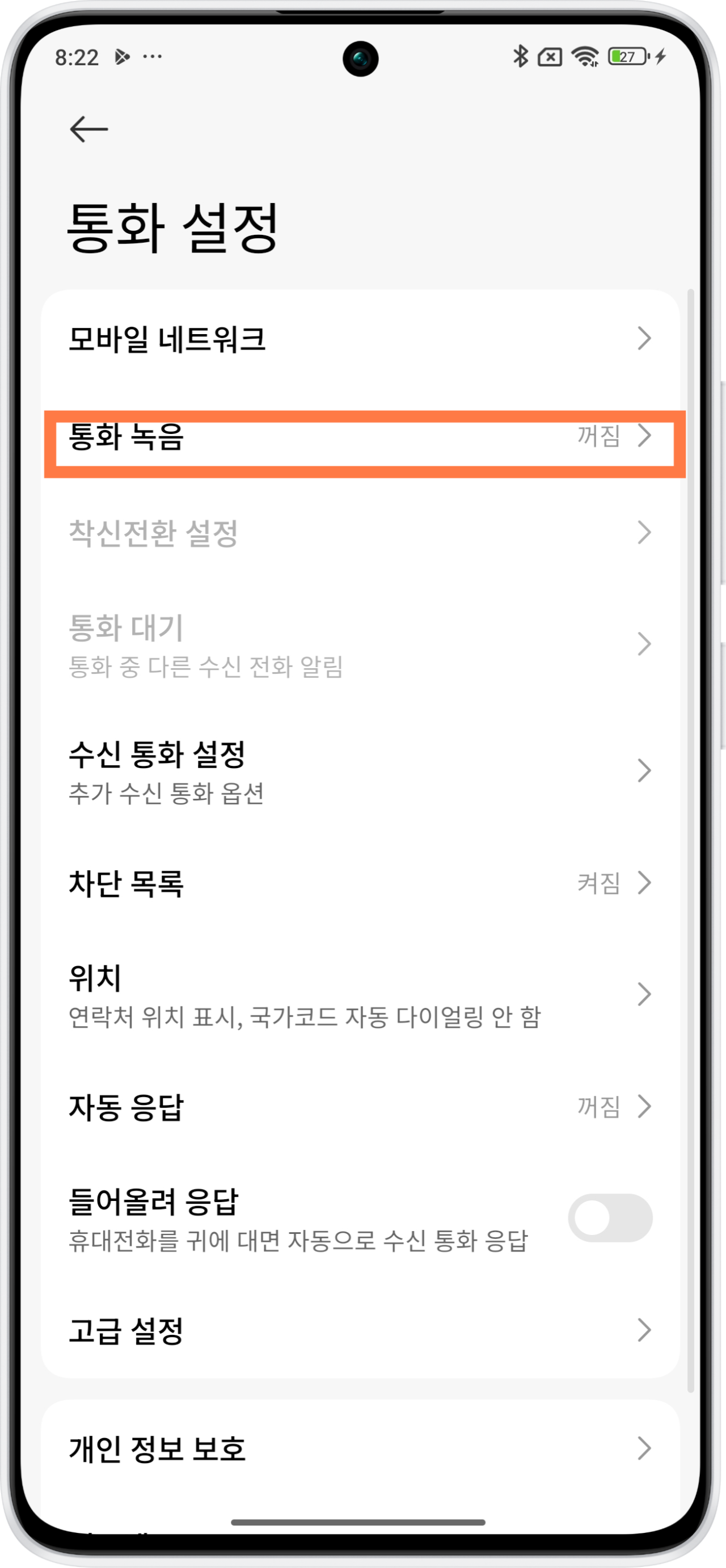 샤오미 핸드폰 전화 자동 통화녹음 미믹스 홍미노트 방법