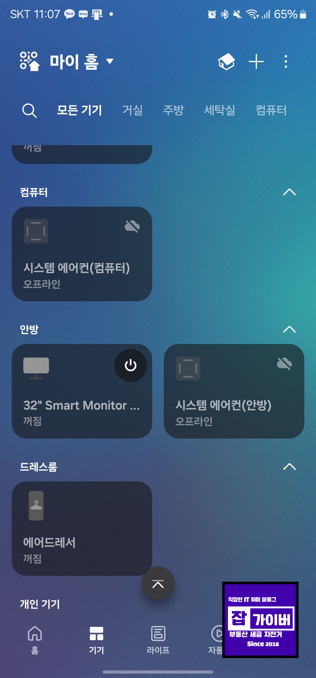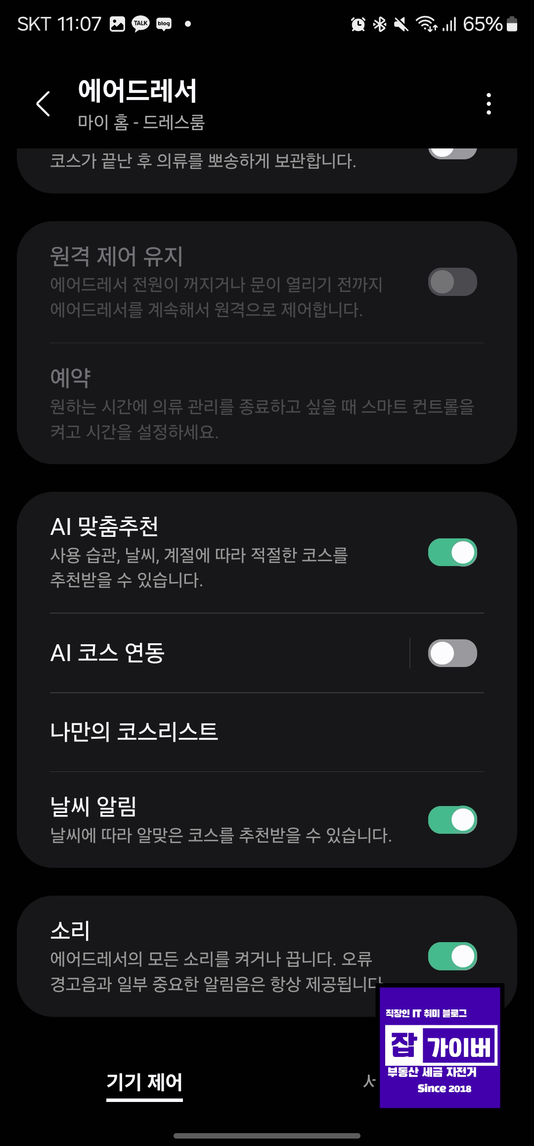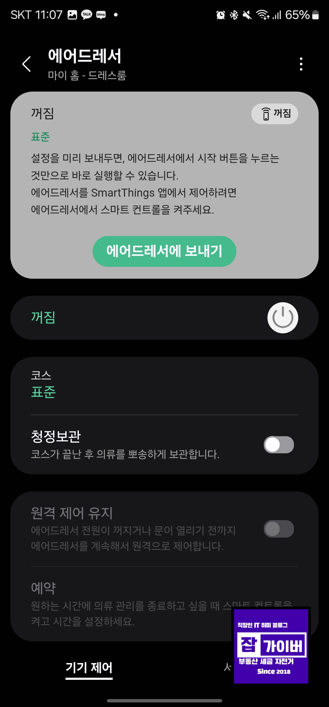 SmartThings 앱을 통해 에어드레서를 원격으로 조작할 수 있어서 정말 편리하더라고요. 외출 전에 급히 의류를 케어할 때나, 다른 방에서 시간을 확인할 때 유용했어요.