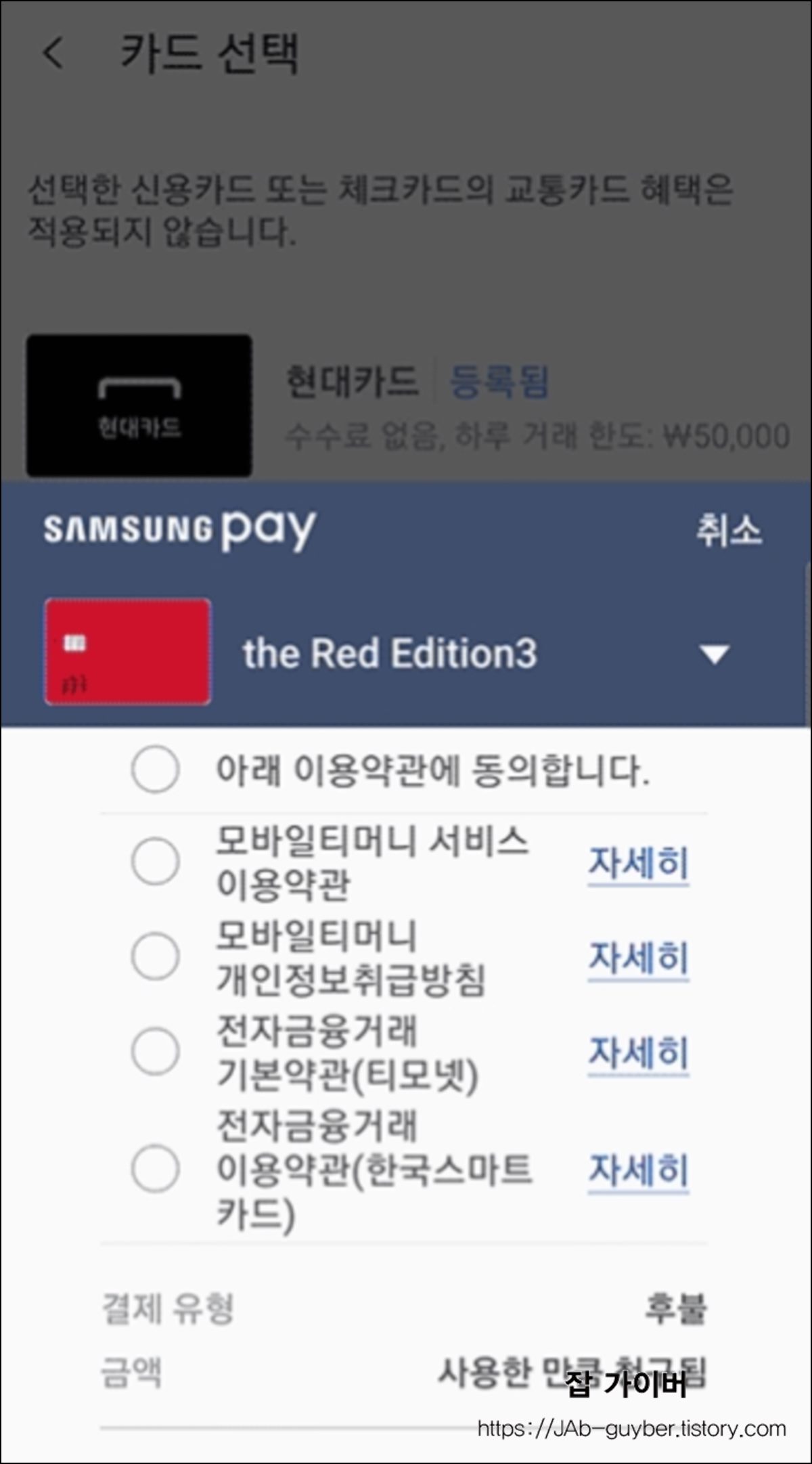 후불이나 선불을 선택하는 것이 경제적으로 맞다고 생각이 드는데요 지원 가능한 카드 종류가 조금씩 다르기 때문에 상황에 맞는 결제방식을 선택합니다.