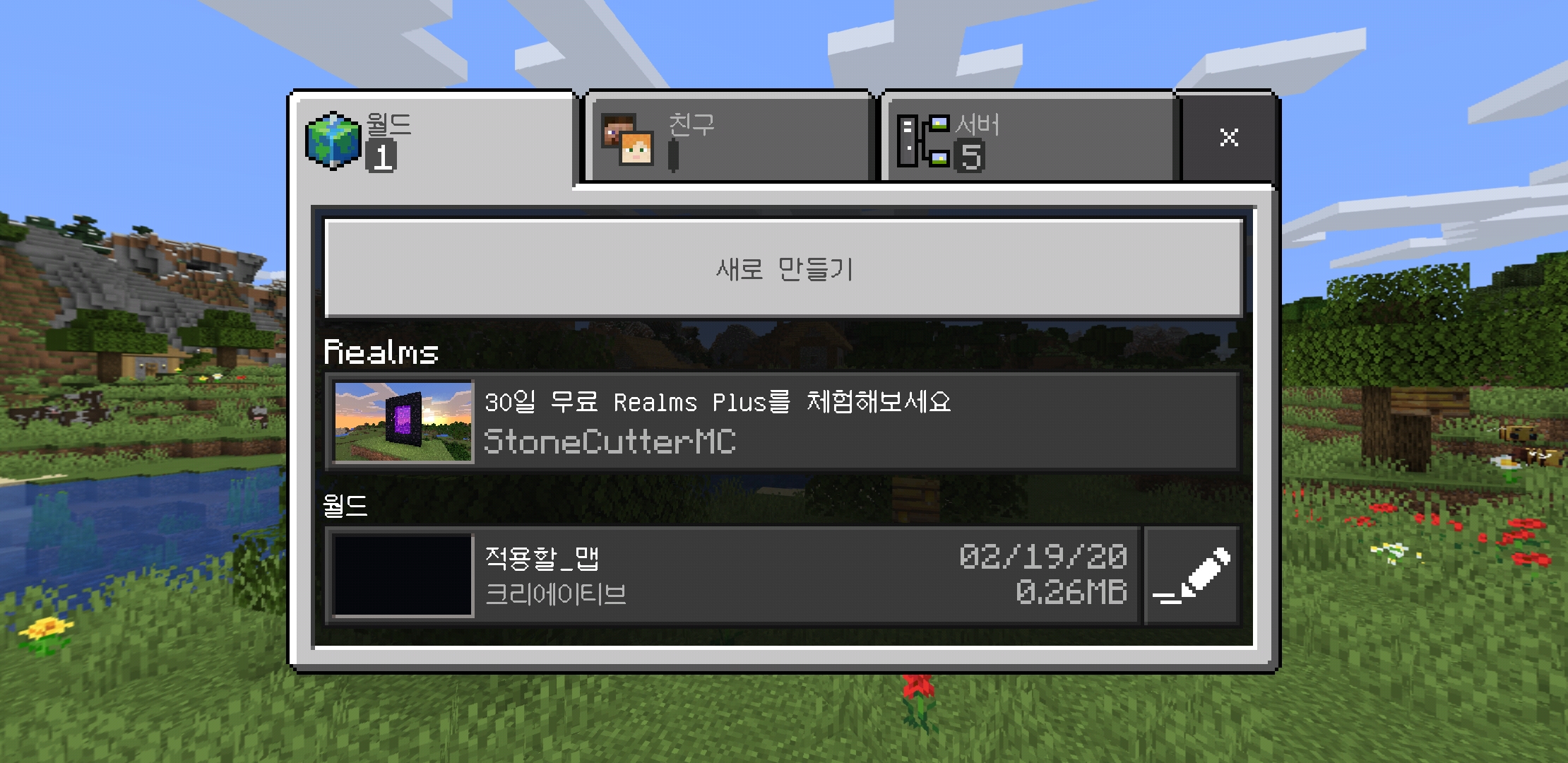 게임을 실행하면 이전한 월드가 목록에 나타납니다. - 월드 삭제 주의