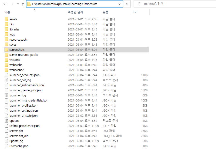 C:\Users\[본인 윈도우 계정명]\AppData\Roaming\.minecraft\saves