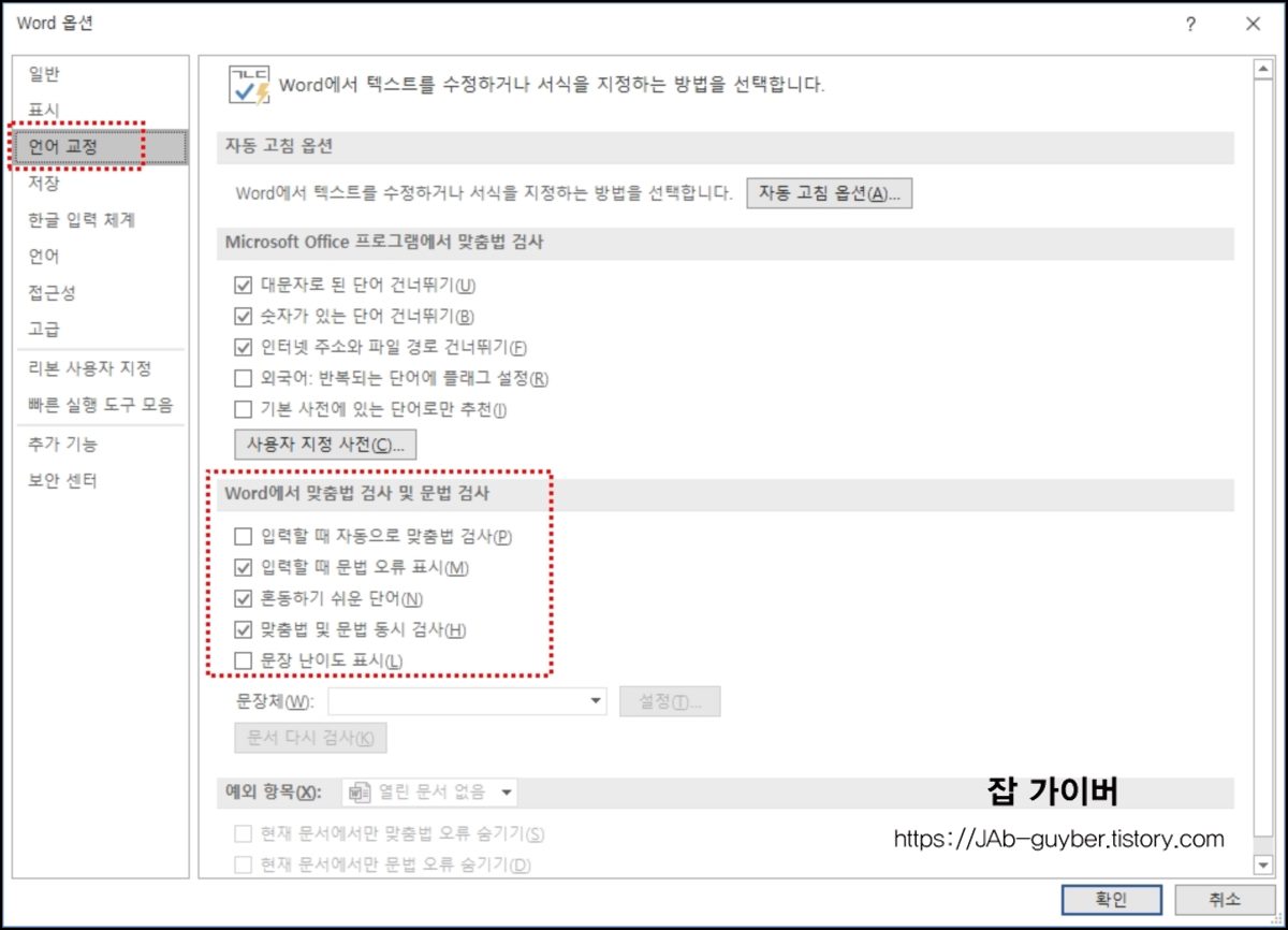워드 언어교정 옵션