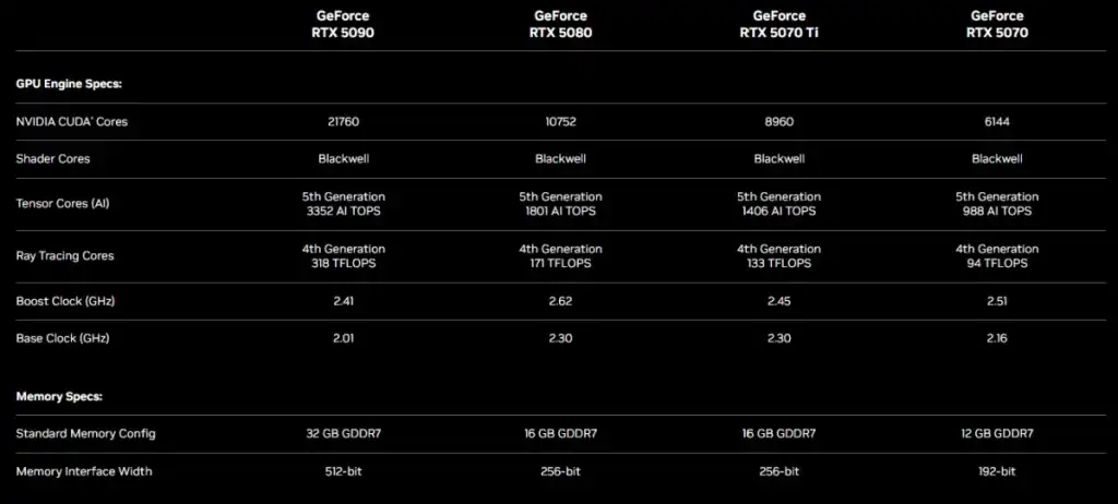 - ASUS, MSI, GIGABYTE, ZOTAC 등 주요 제조사에서 커스텀 모델을 제공하며, 파운더스 에디션은 별도로 출시되지 않습니다.