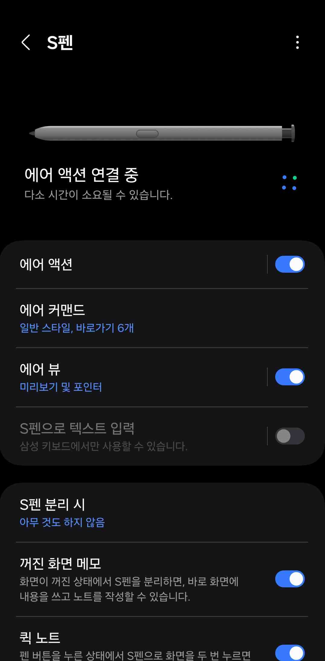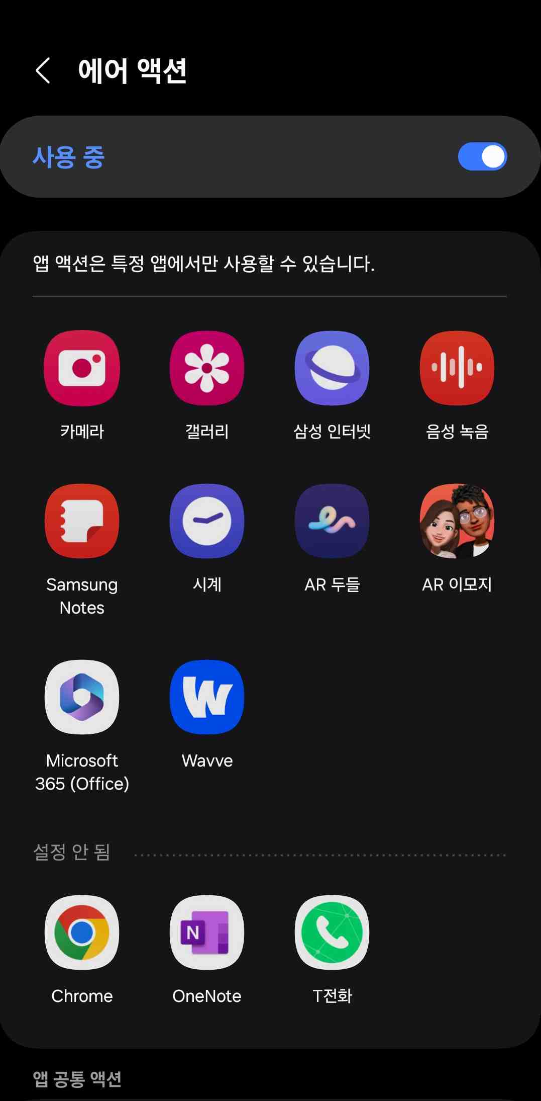 - 설정 → 유용한 기능 → S펜 → 에어 액션