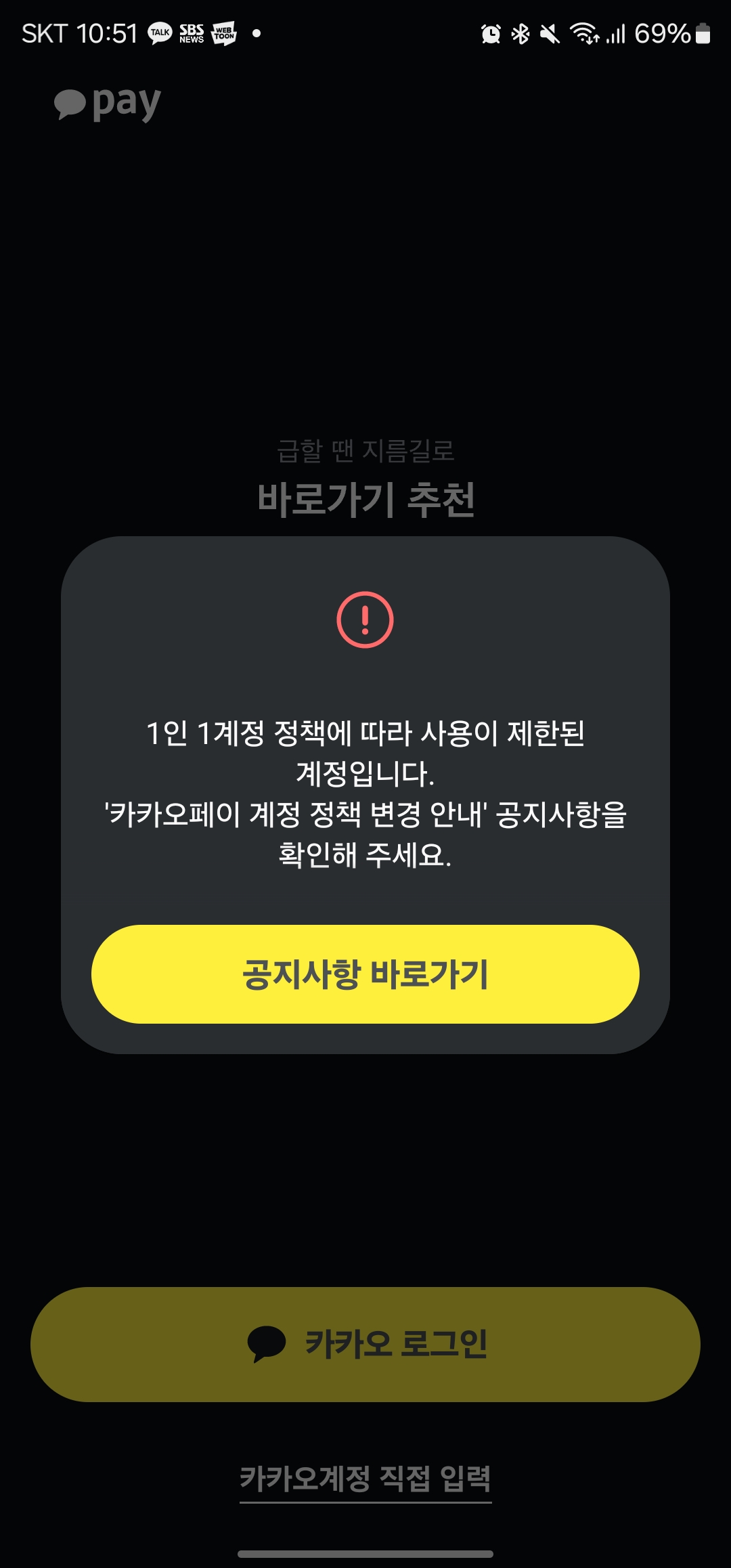 카카오페이 1인 1계정 제한이 만들어내는 대표 상황