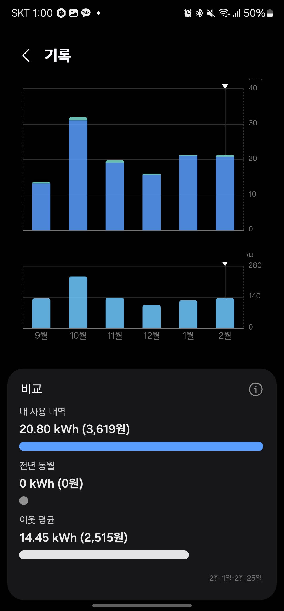 ✅ 전기세: 한 달 평균 2,500~3,600원 증가