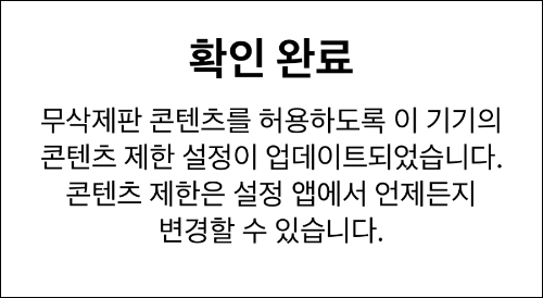 - iTunes Store 앱을 실행하고, "무삭제판 콘텐츠 설정이 꺼져 있습니다."라는 팝업에서 "허용"을 선택합니다.