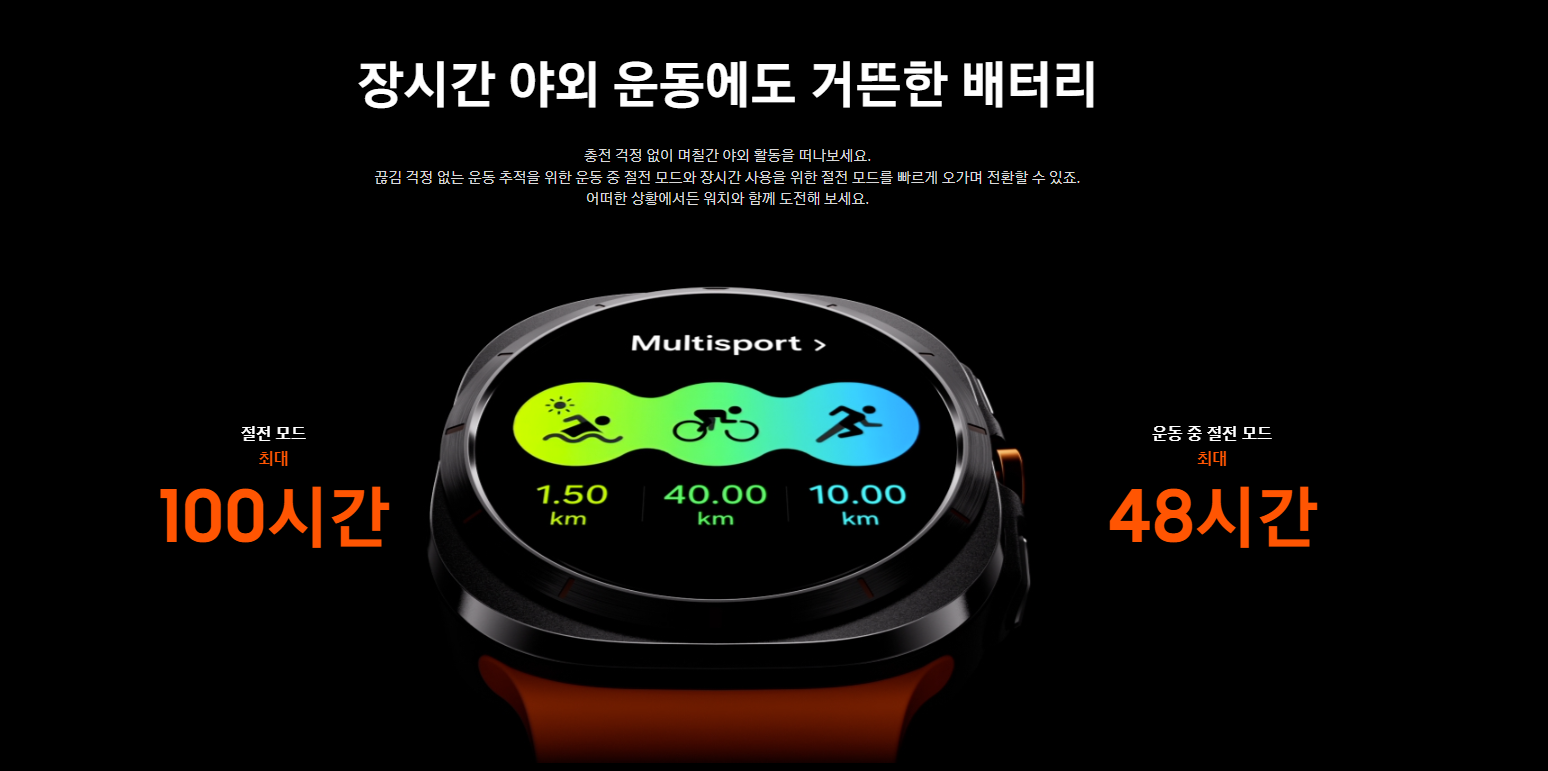 이로 인해 갤럭시 워치7 울트라는 하루 종일 사용해도 충분한 배터리 수명을 제공하며, 최대 60시간 이상 사용할 수 있습니다. 장거리 여행이나 탐험에 적합한 배터리 성능을 갖추고 있습니다.