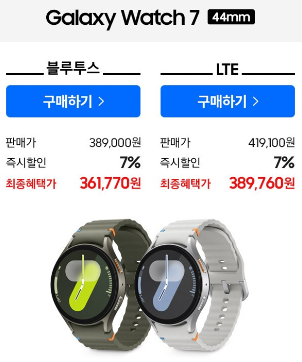 | 갤럭시 워치7 44mm LTE | 1.4 인치 | 429,000원 |