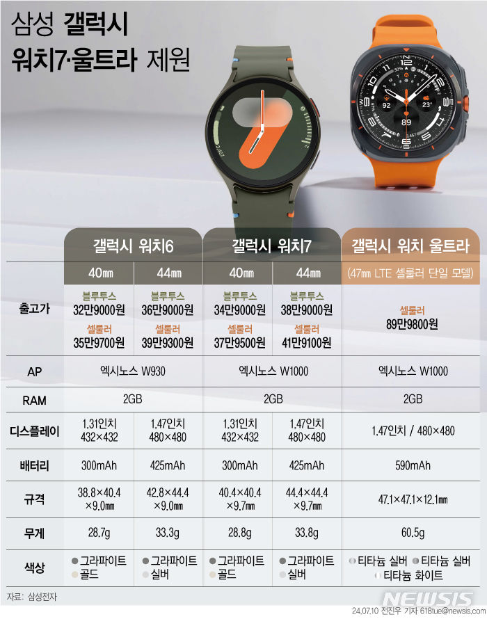 1. 갤럭시 워치7 시리즈 크기와 종류