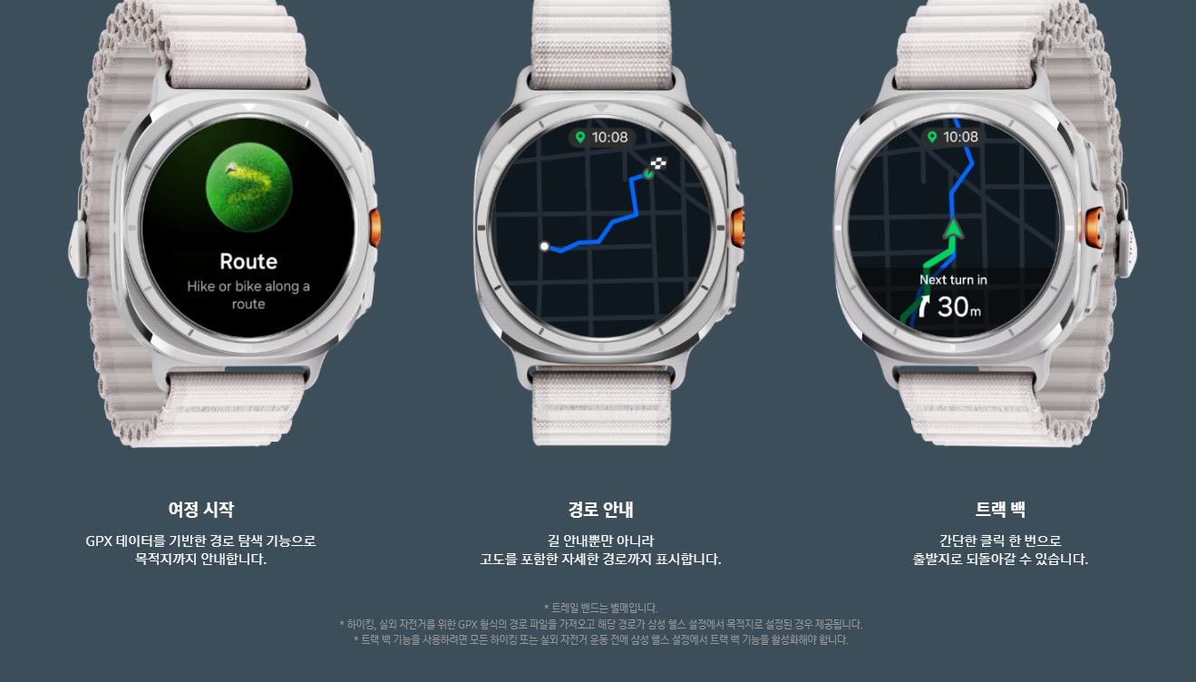 - 고급 GPS: 갤럭시 워치7 울트라는 고정밀 GPS가 탑재되어 있어, 실외 활동 시 위치 추적이 매우 정확합니다. 하이킹, 러닝, 자전거 타기 등 다양한 활동을 추적할 수 있습니다.