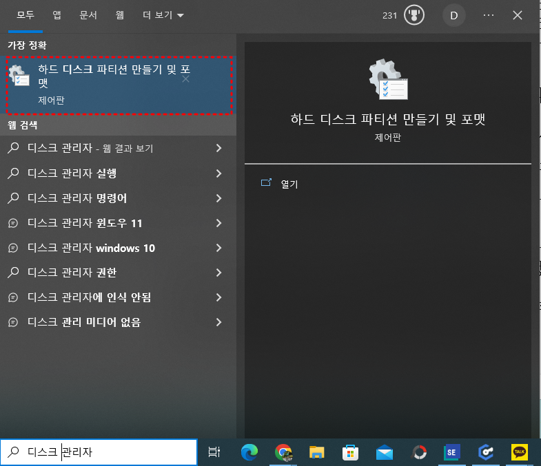 Windows에서 "디스크 관리"를 열어 새로운 저장 장치가 인식되었는지 확인합니다. 저장 장치가 "할당되지 않음" 상태라면, 디스크 초기화 및 새 파티션 생성 작업을 통해 정상적으로 사용할 수 있습니다.