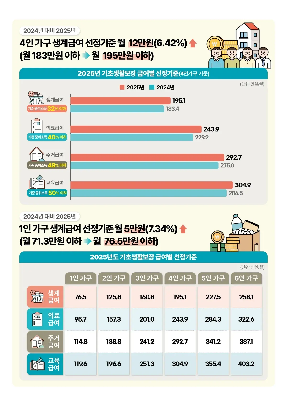 👉 기존 기준으로 수급에서 탈락했던 가구도 2025년부터는 생계급여 수급 가능!