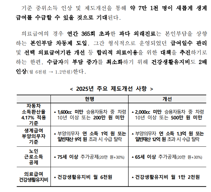 👉 기존 기준으로 수급에서 탈락했던 가구도 2025년부터는 생계급여 수급 가능!