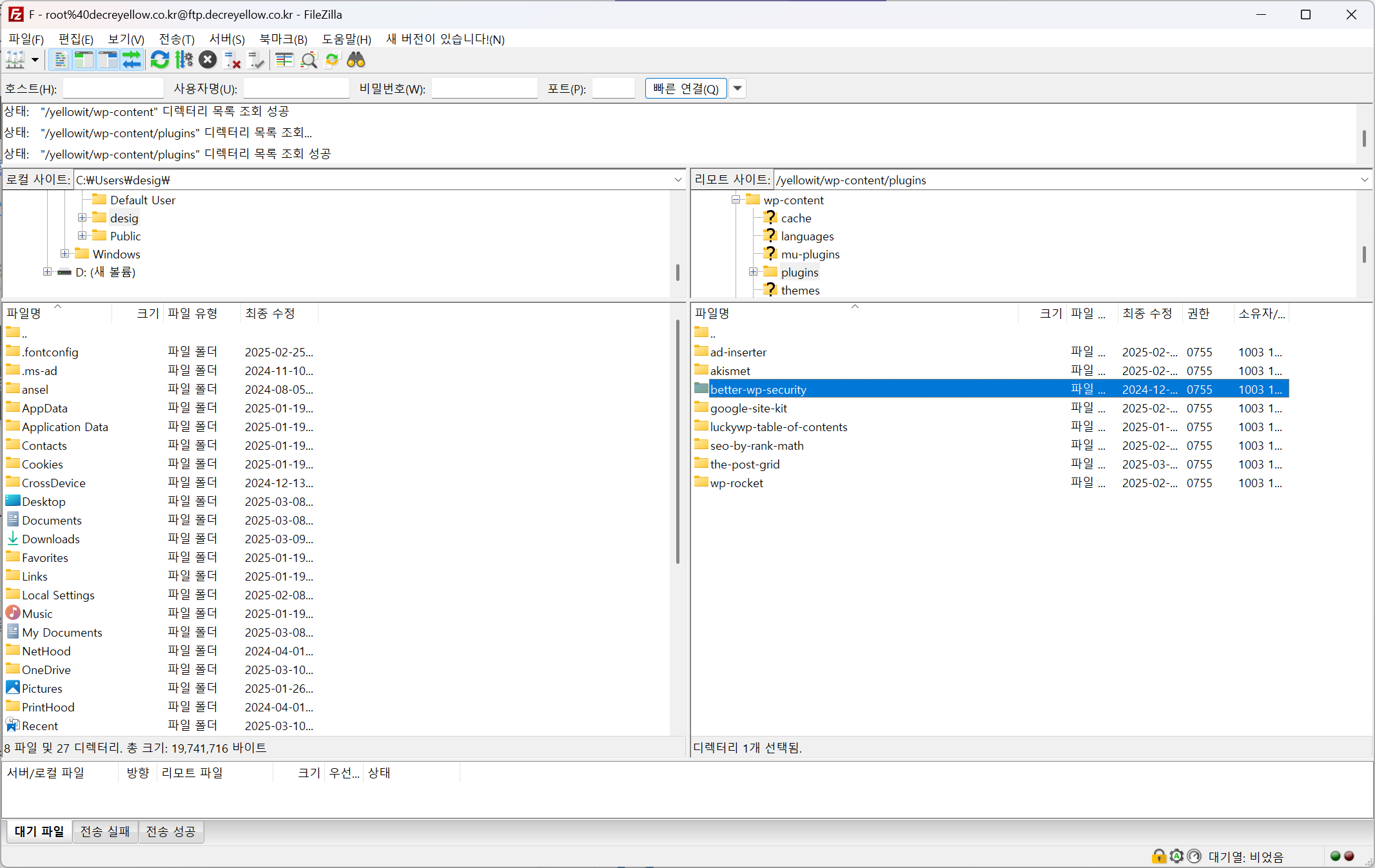 - 로그인에 성공하면, 플러그인 폴더 이름을 다시 plugins로 변경한 후 하나씩 비활성화하여 문제의 원인이 된 플러그인을 찾습니다.