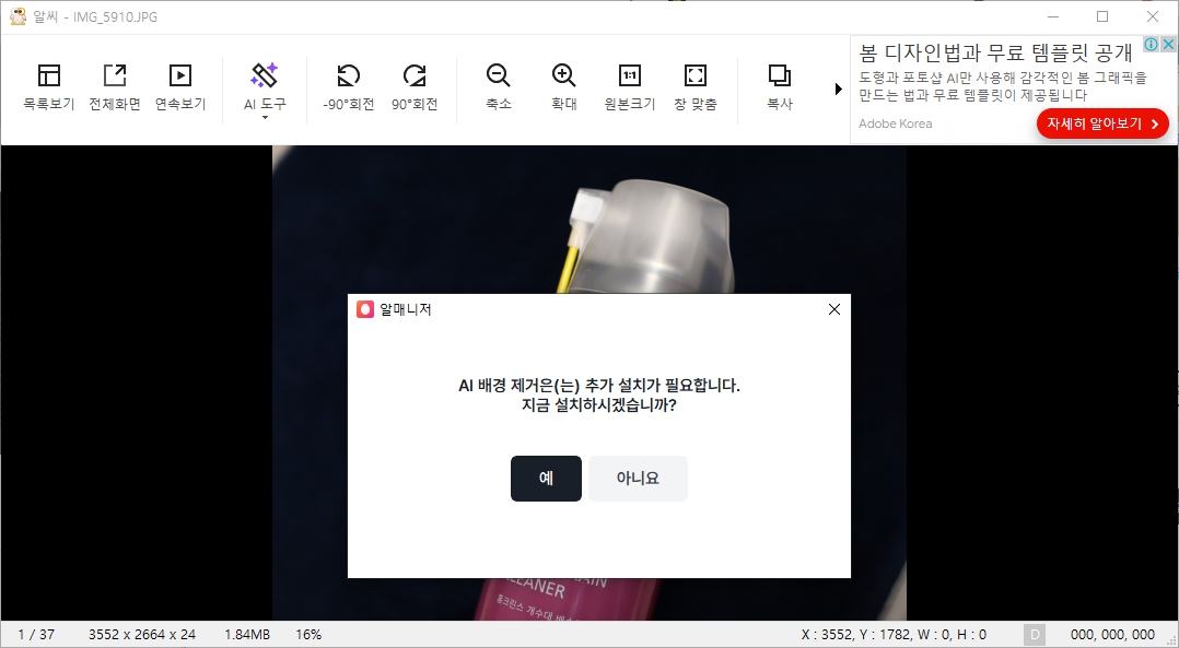 이미지 배경제거 누끼따기 및 사진화질 개선 무료 알씨AI