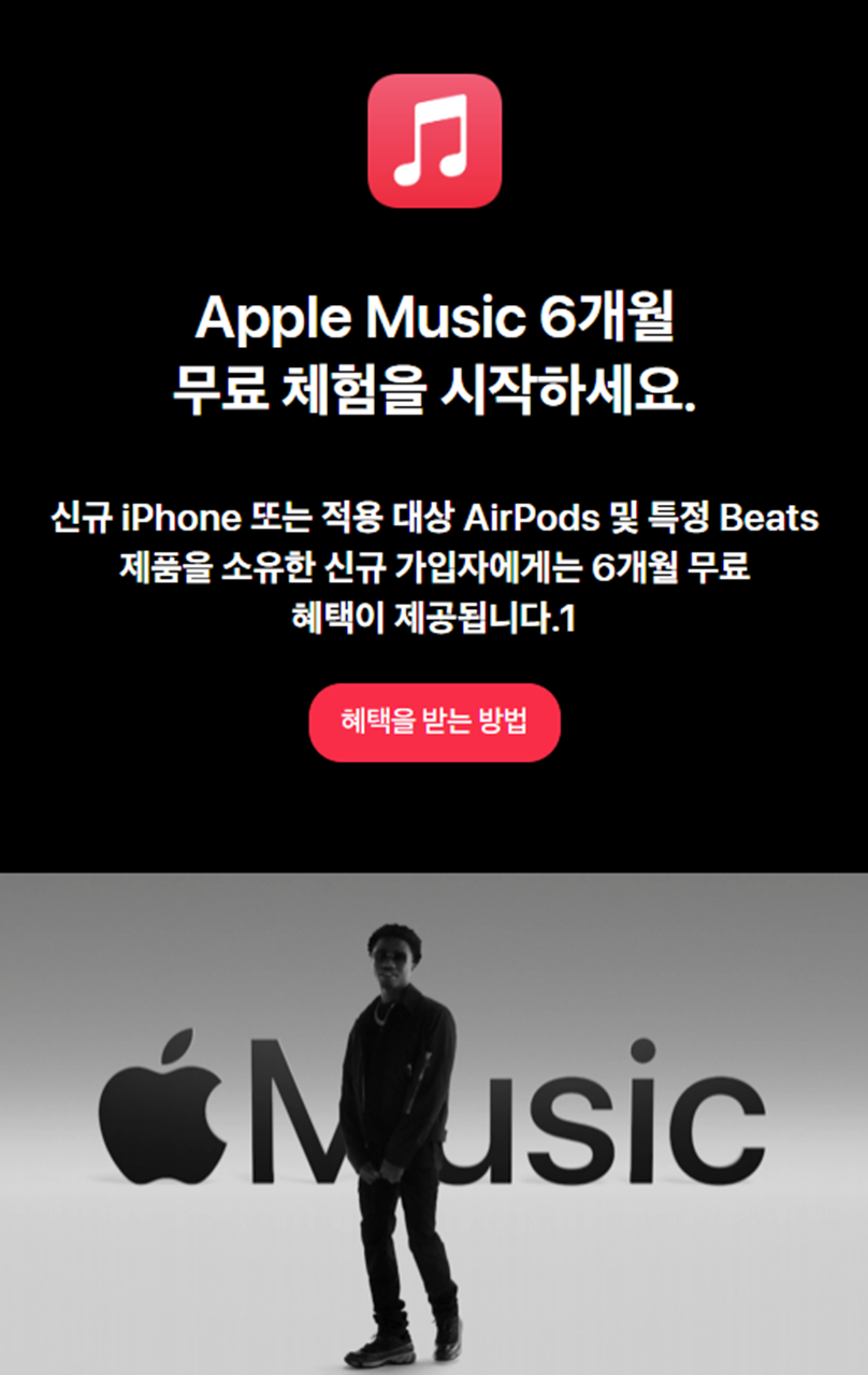 기존 애플 기기 구매자에게 제공되었던 애플뮤직 6개월 무료 혜택은 현재 종료되었으며, 대신 3개월 무료 혜택으로 변경되었습니다.