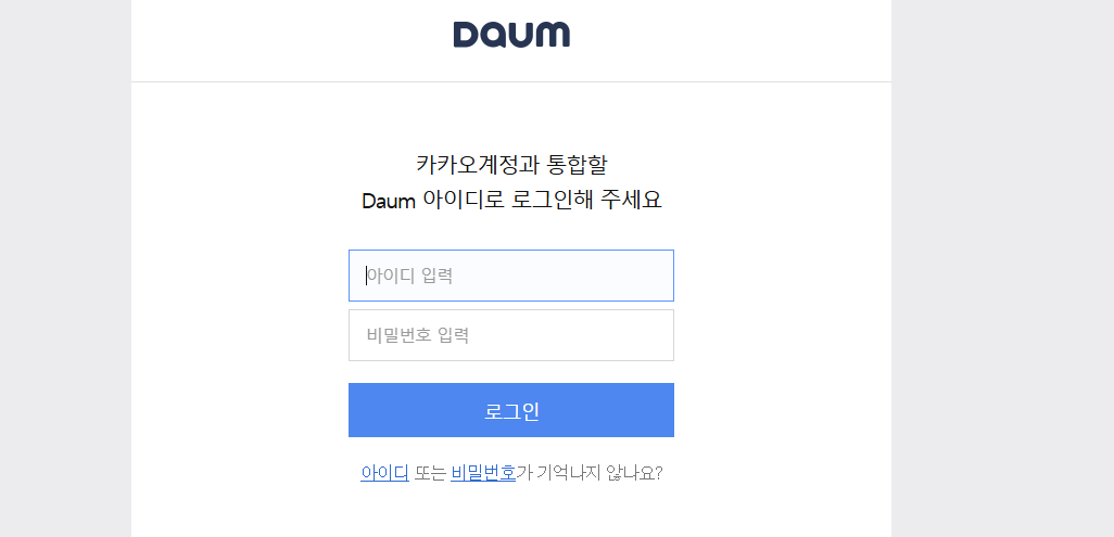 우선 다음에서 2022년부터 순차적으로 카카오 계정과의 통합을 추진하면서 기존 다음 아이디로 로그인이 제한되어 왔으며, 현재는 오직 카카오 계정을 통해서만 다음 서비스를 이용할 수 있게 되었습니다.