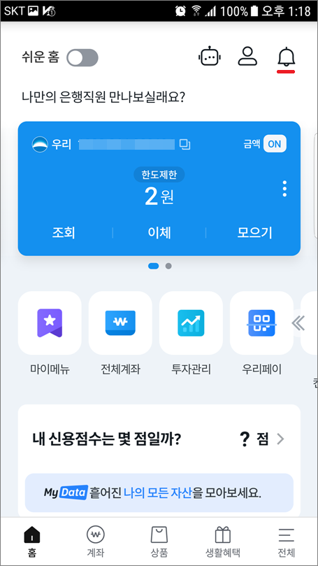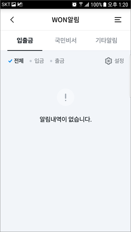 - 알림 설정: 앱에서 우측 상단의 종 아이콘을 선택하고, ‘WON 알림’ 메뉴에서 ‘입출금 알림 신청하기’를 선택합니다.
