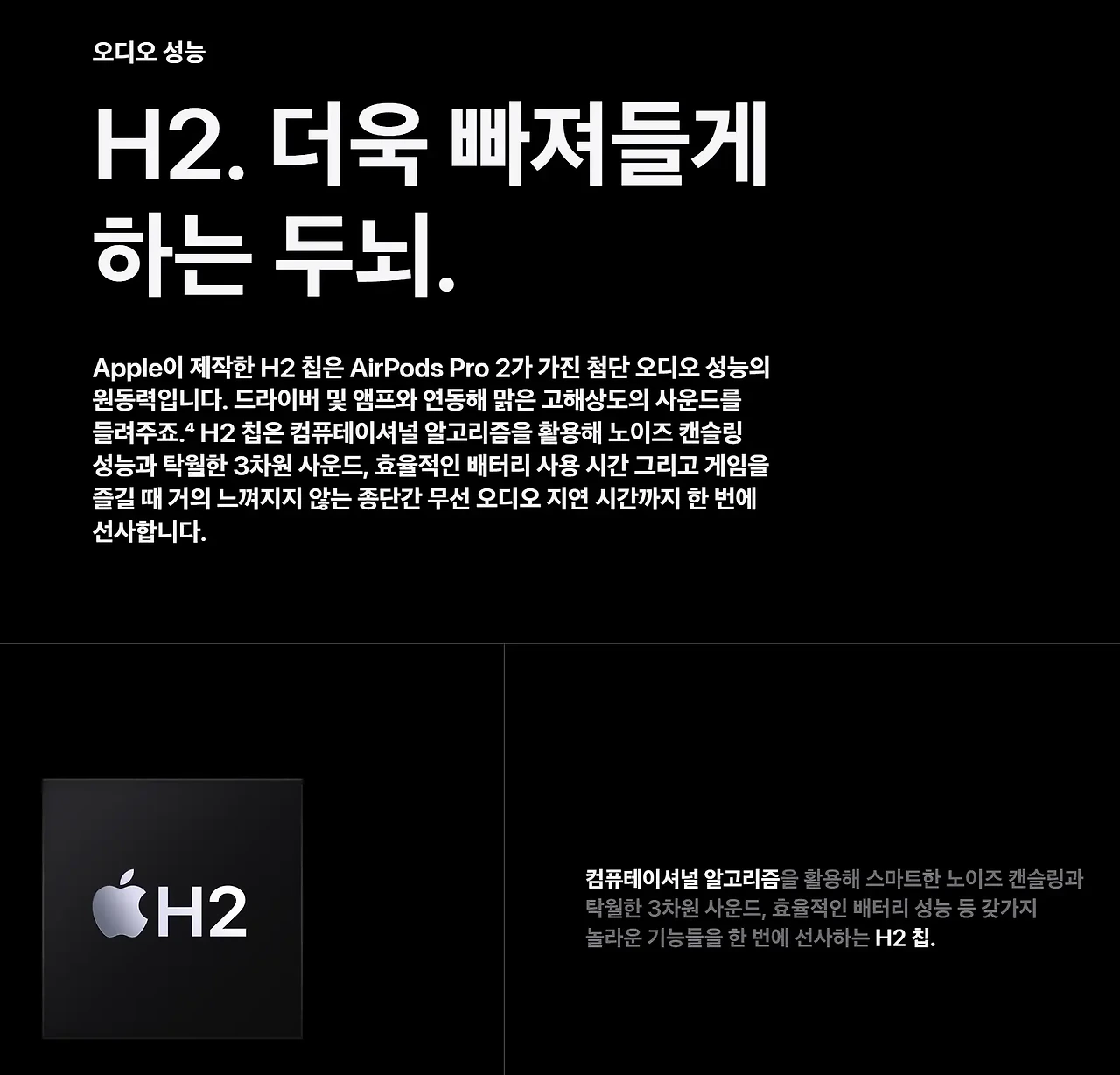 | 칩셋 | Apple H2 | Apple H2 |