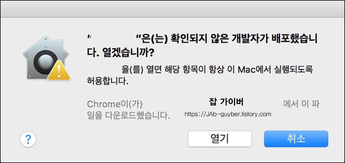 - 확인된 개발자가 등록한 응용 프로그램이 아니기 때문에 해당 파일을 열수 없다고 합니다.
