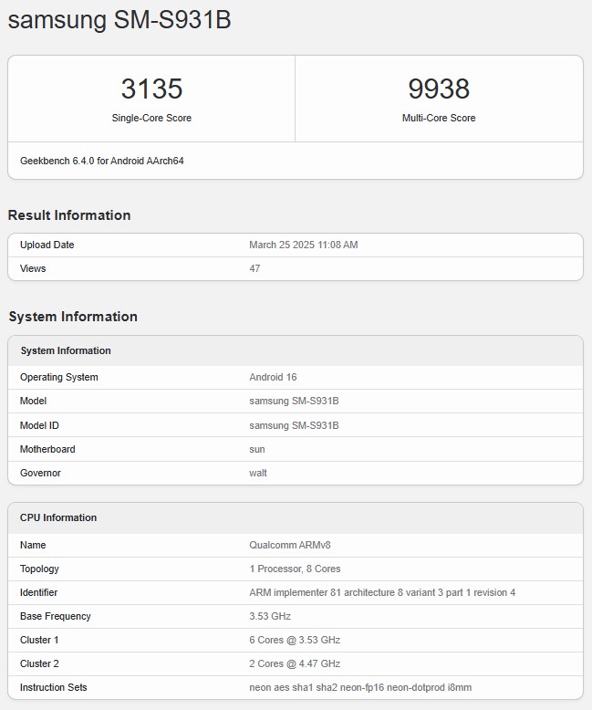 이번에 유출된 모델 번호 SM-S931B는 Qualcomm의 스냅드래곤8 엘리트 칩셋에 12GB RAM을 탑재해 이미 상당한 하드웨어 스펙을 갖췄다. 그럼에도 불구하고 One UI 7을 실행했을 때와 One UI 8을 실행했을 때 점수에서 차이가 벌어진 것은, 단순히 신형 칩셋의 성능 향상만으로 설명하기 어렵다는 점에서 더욱 흥미롭다.