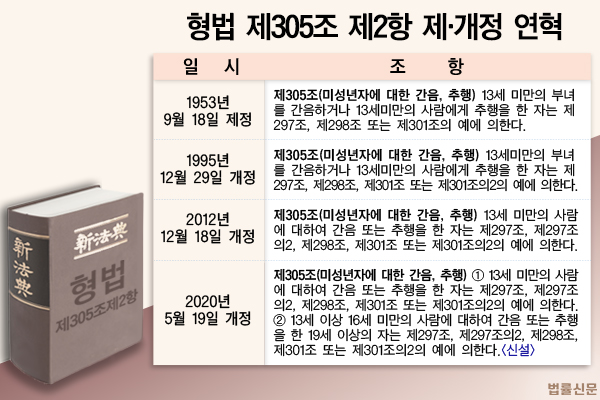 이 경우엔 상대가 동의했다 해도 상관없이 무조건 ‘미성년자의제강간죄’가 적용되어 처벌됩니다. 성인의 나이와 무관하게 형사처벌 대상이 됩니다.