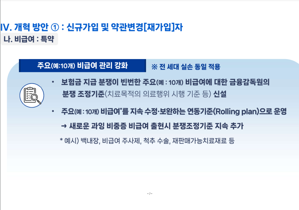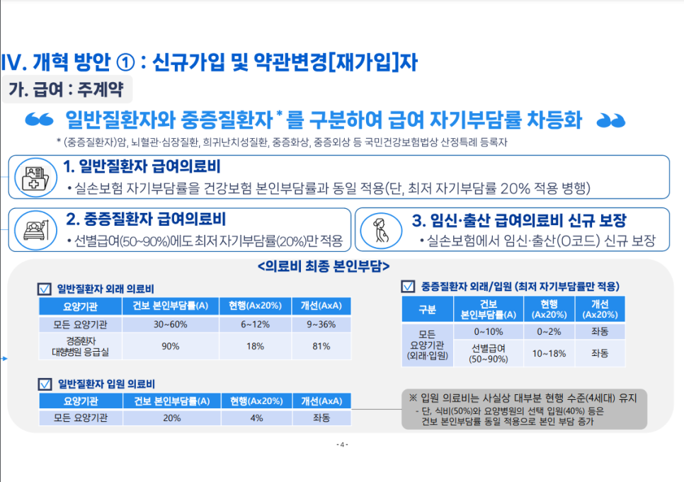 → MRI, 도수치료, 영양제 주사 등 비교적 경증이거나 자주 이용되는 항목은 실질적으로 보험 혜택을 받기 어려워집니다.
