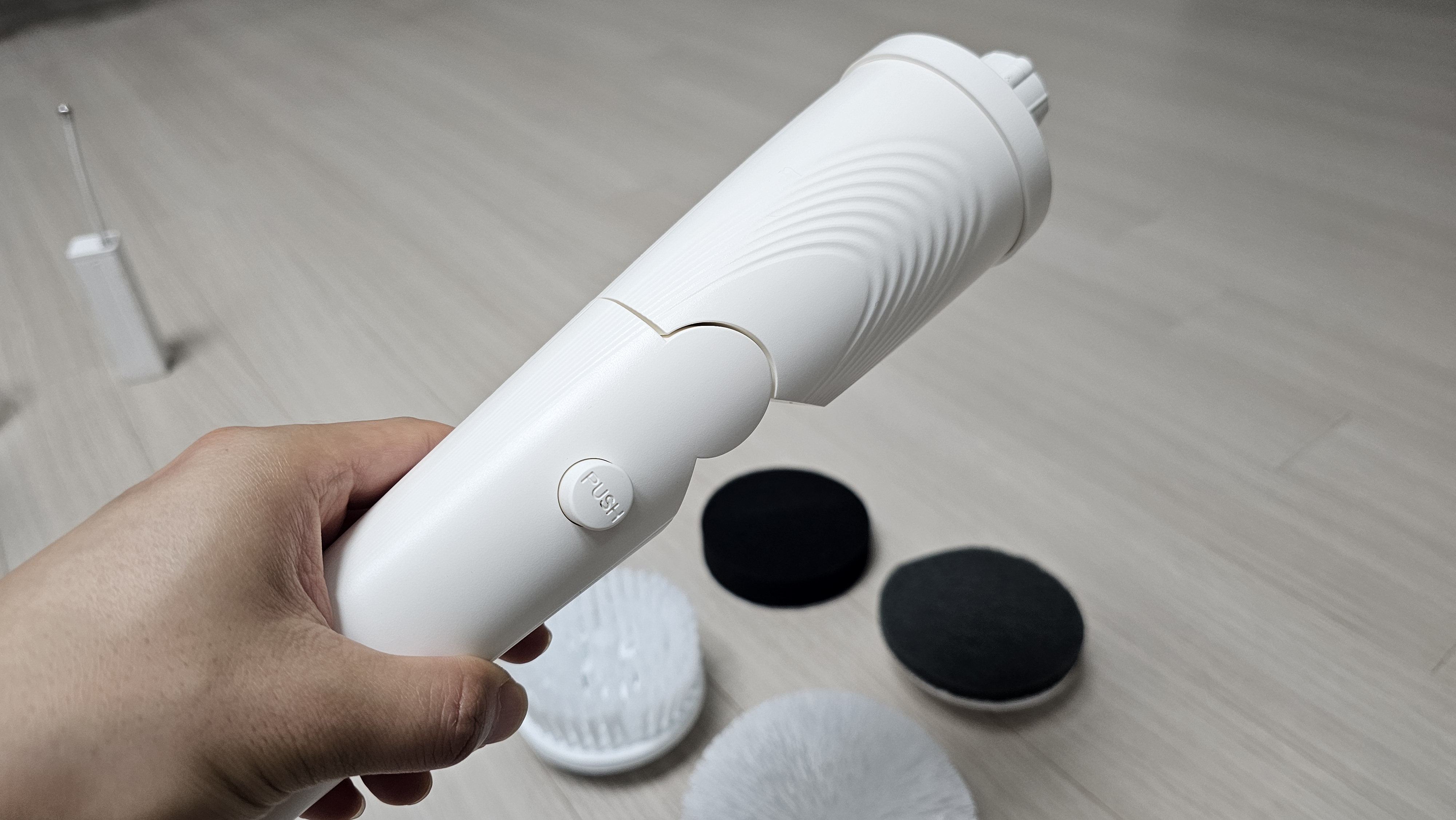 이 제품은 회전 브러시 기반이라 수압이 아니라 모터 힘으로 청소를 진행합니다. 수압 대신 강한 회전력으로 때를 제거하는 방식이기 때문에, 물 사용 없이도 청소가 가능하며 오히려 물기 없는 곳에서도 사용할 수 있어 활용도가 높습니다.