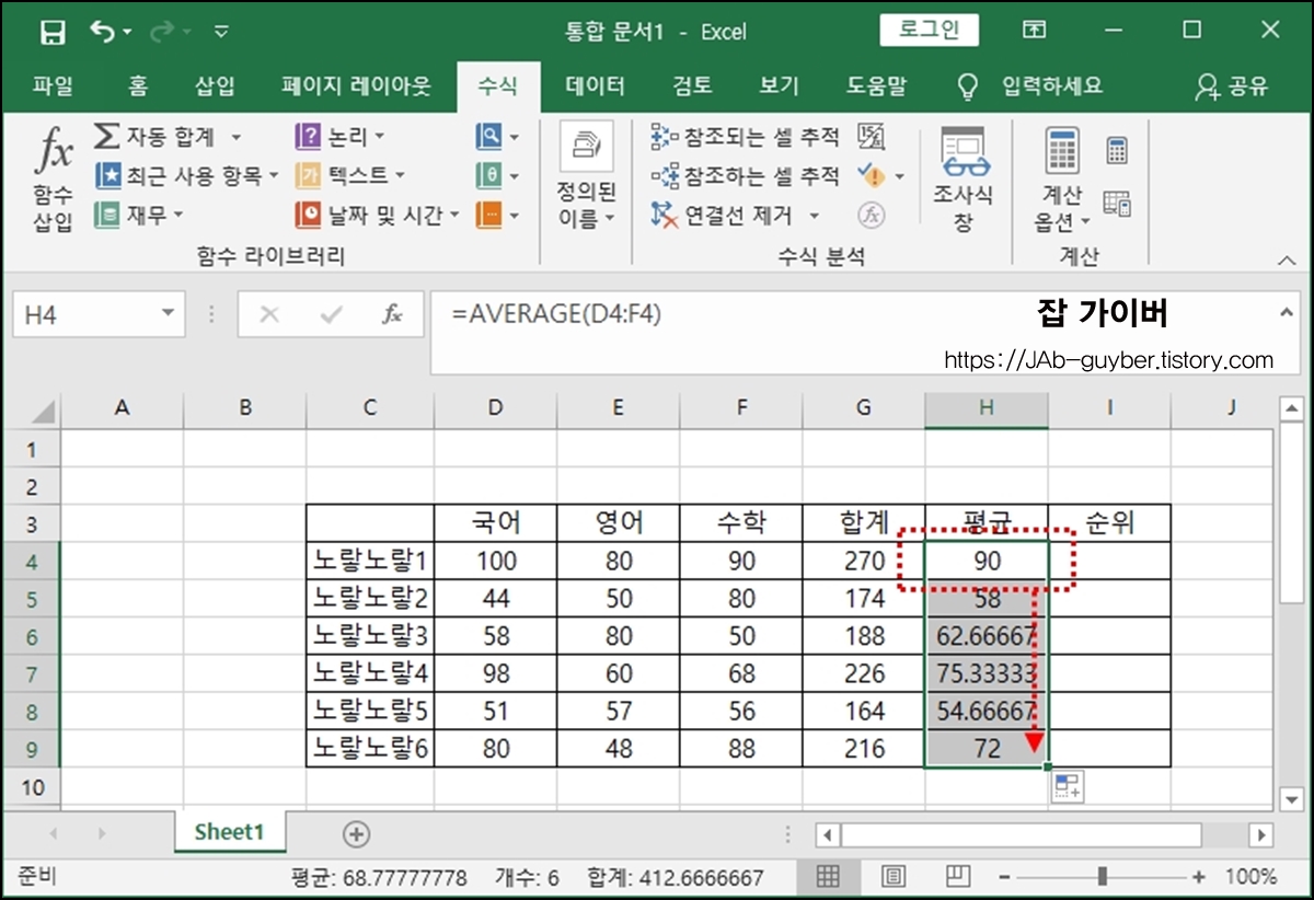 Ctrl 키를 누른체로 아래로 드래그 하면 다른 사람들의 평균점수도 함께 계산됩니다.