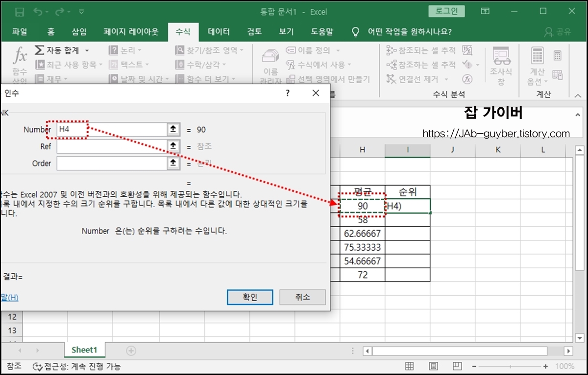 엑셀 더하기 평균 순위 수식 함수 사용방법