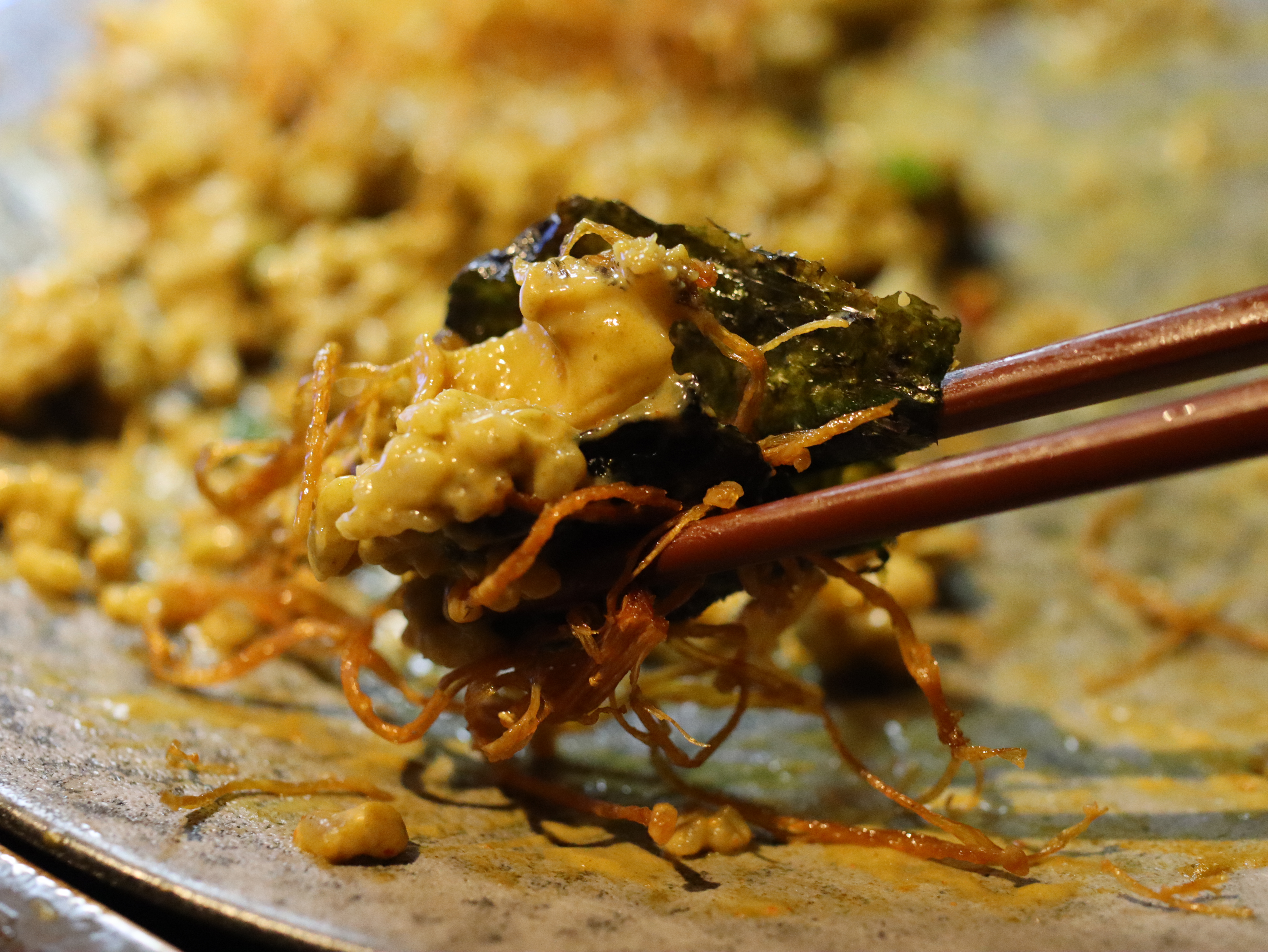 용산이자카야 고메드용산을 찾는다면 꼭 맛봐야 할 요리로, 녹진한 전복 내장과 다진 전복살이 어우러져 꾸덕하고 고소한 보리 리조또 위에 바삭한 팽이버섯 튀김이 얹어져 식감까지 완벽했다.