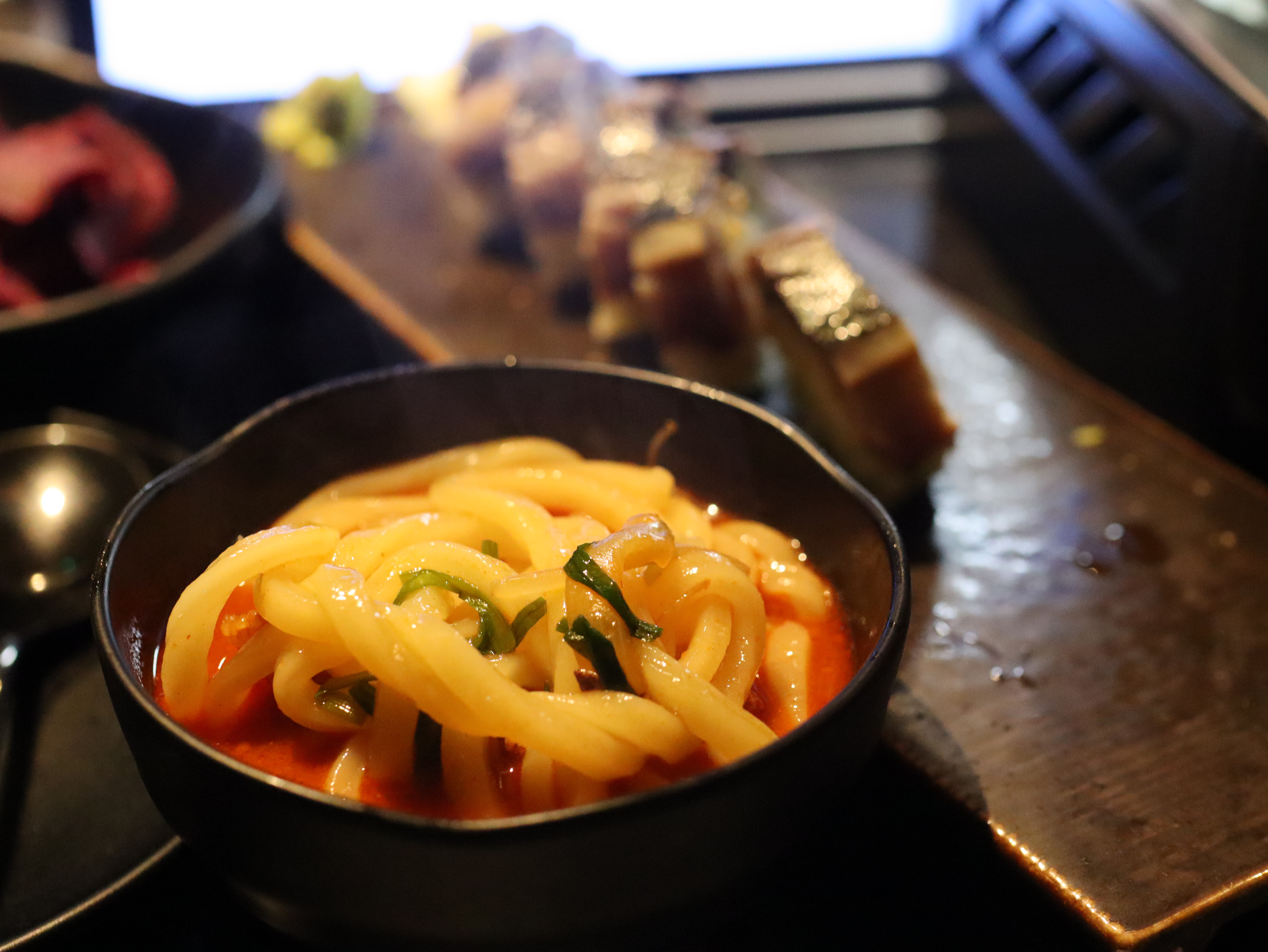 소고기 탄탄나베는 진한 탄탄소스에 소고기와 다양한 야채가 어우러져 깊고 매콤한 맛이 일품이었다. 우동사리를 추가했더니 더 푸짐하고 만족스러운 한 끼가 되었다.