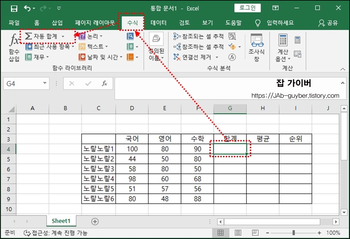 엑셀 더하기 수식 함수 Sum
