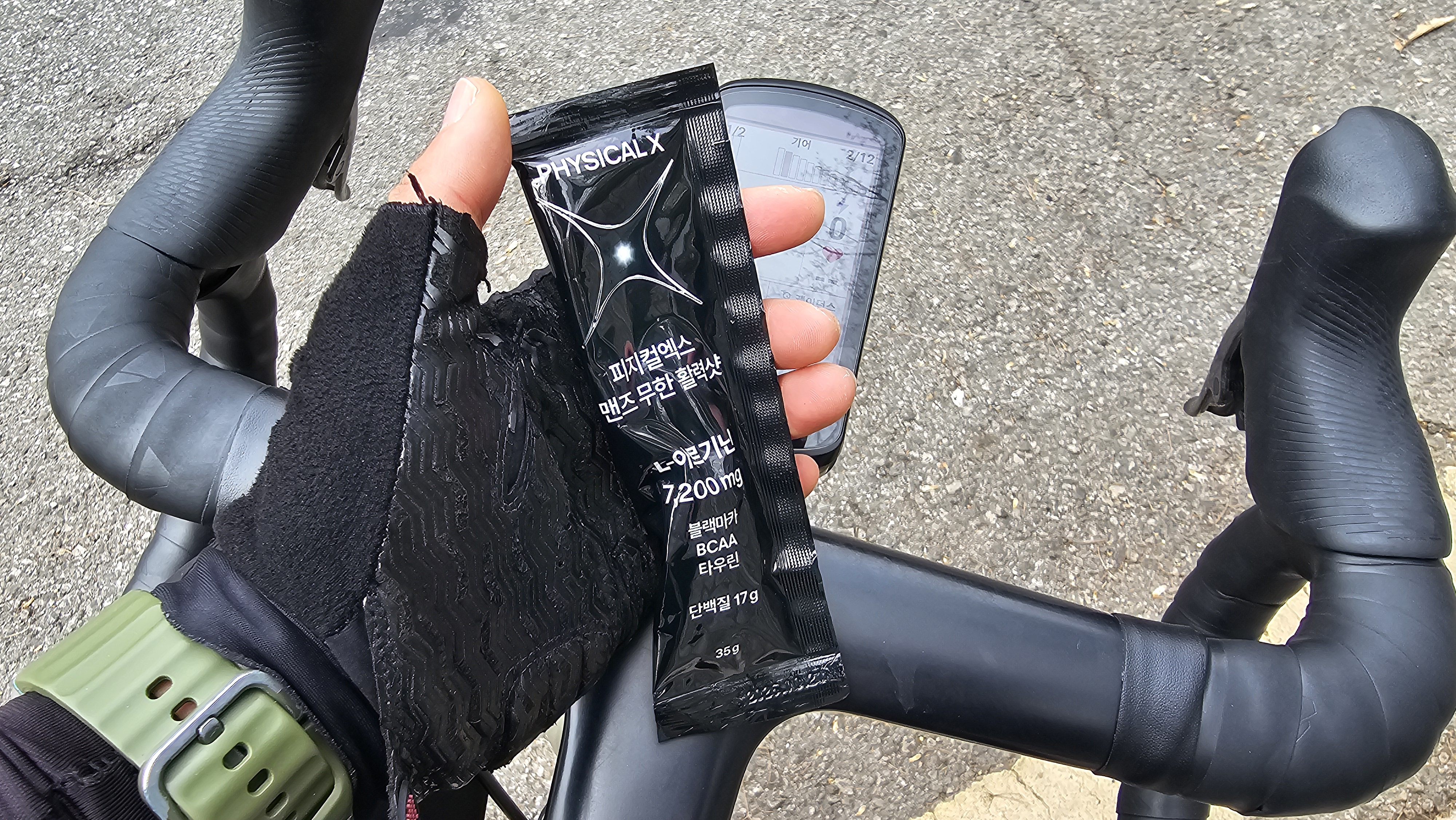 특히 한 포당 L아르기닌 7,200mg, 블랙마카 2,200mg, BCAA 1,000mg, 타우린 1,000mg 등이 들어 있어 라이딩 중 활력 보충을 한 번에 챙기기 좋았습니다.