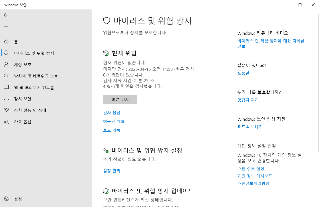 이처럼 윈도우 자체 기능만으로도 충분한 보안 체계를 갖출 수 있기 때문에, 불필요하게 리소스를 차지하는 백신을 굳이 설치할 이유가 줄어든 것이다.