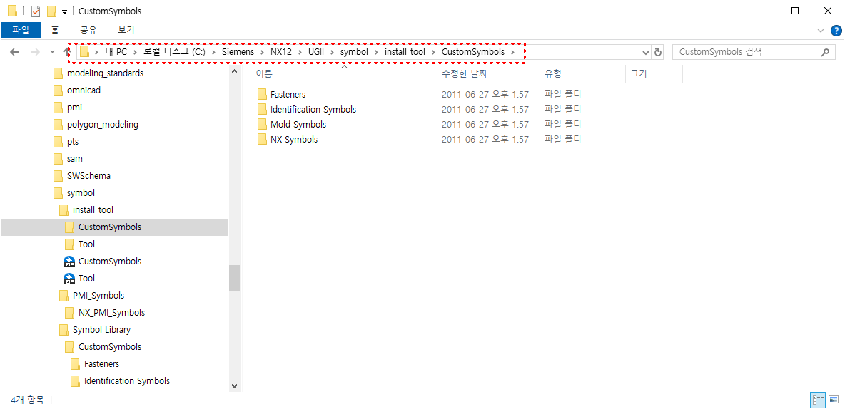 그럼 네이티브 NX나 팀센터에 있는 심볼을 추가할 수 있습니다.