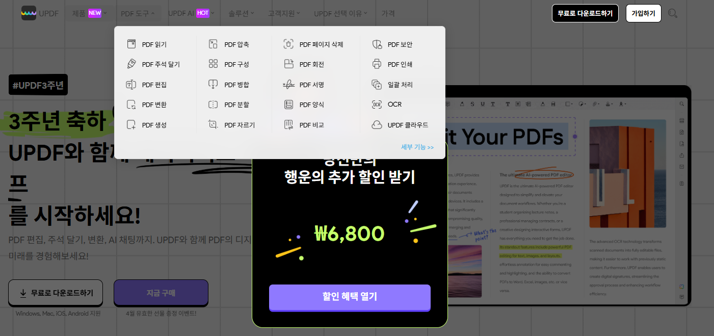 - 모든 플랫폼에서 가성비 좋게, AI 기능까지 쓰고 싶다면 → UPDF