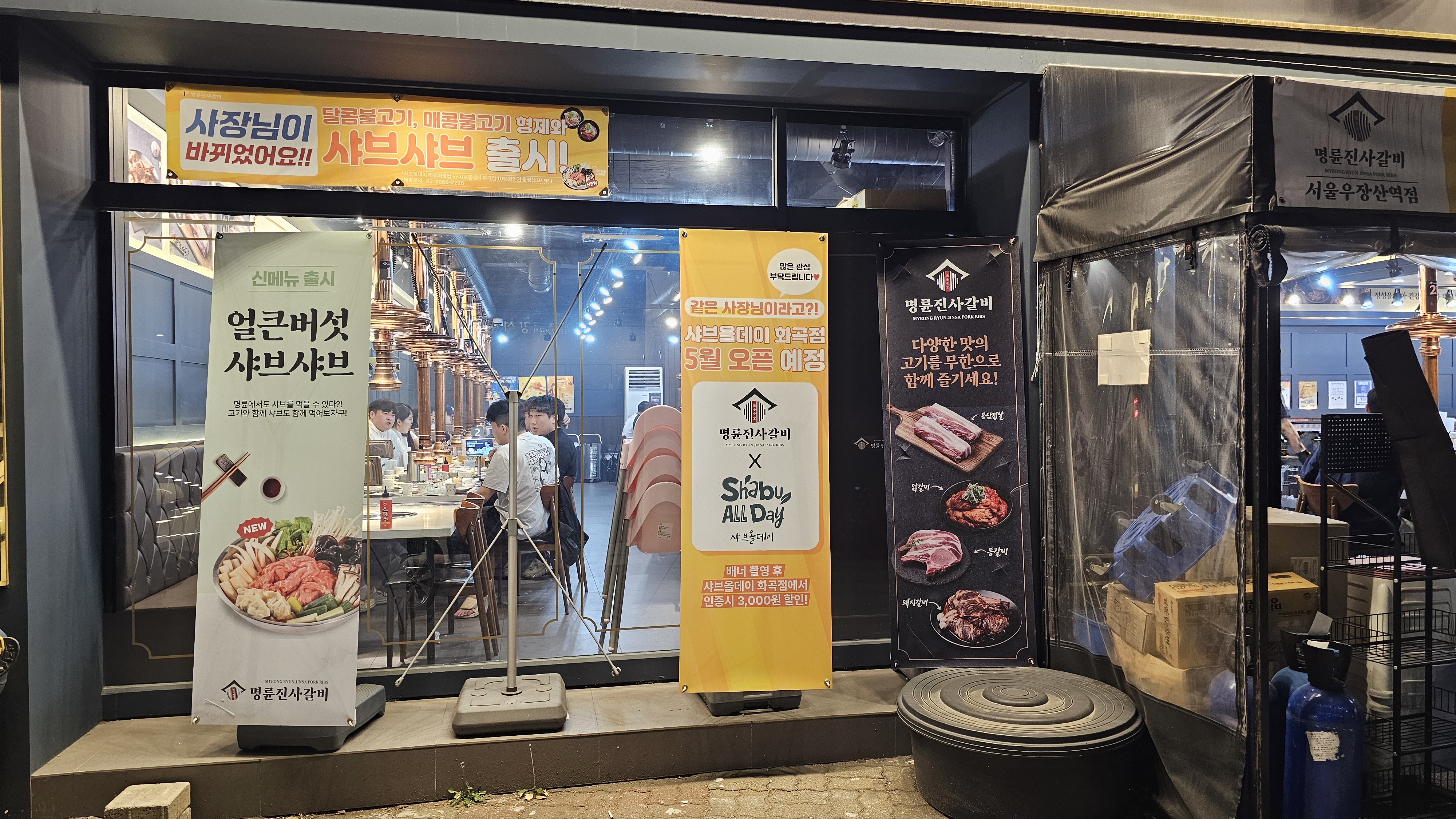 운동으로 지친 주말 저녁, 와이프와 단백질 보충을 위해 집 근처 맛집인 명륜진사갈비 우장산점을 찾았다. 명륜진사갈비 신메뉴가 나왔다고 해서 기대감이 컸는데, 특히 샤브샤브가 추가됐다는 소식에 발걸음을 재촉했다.
