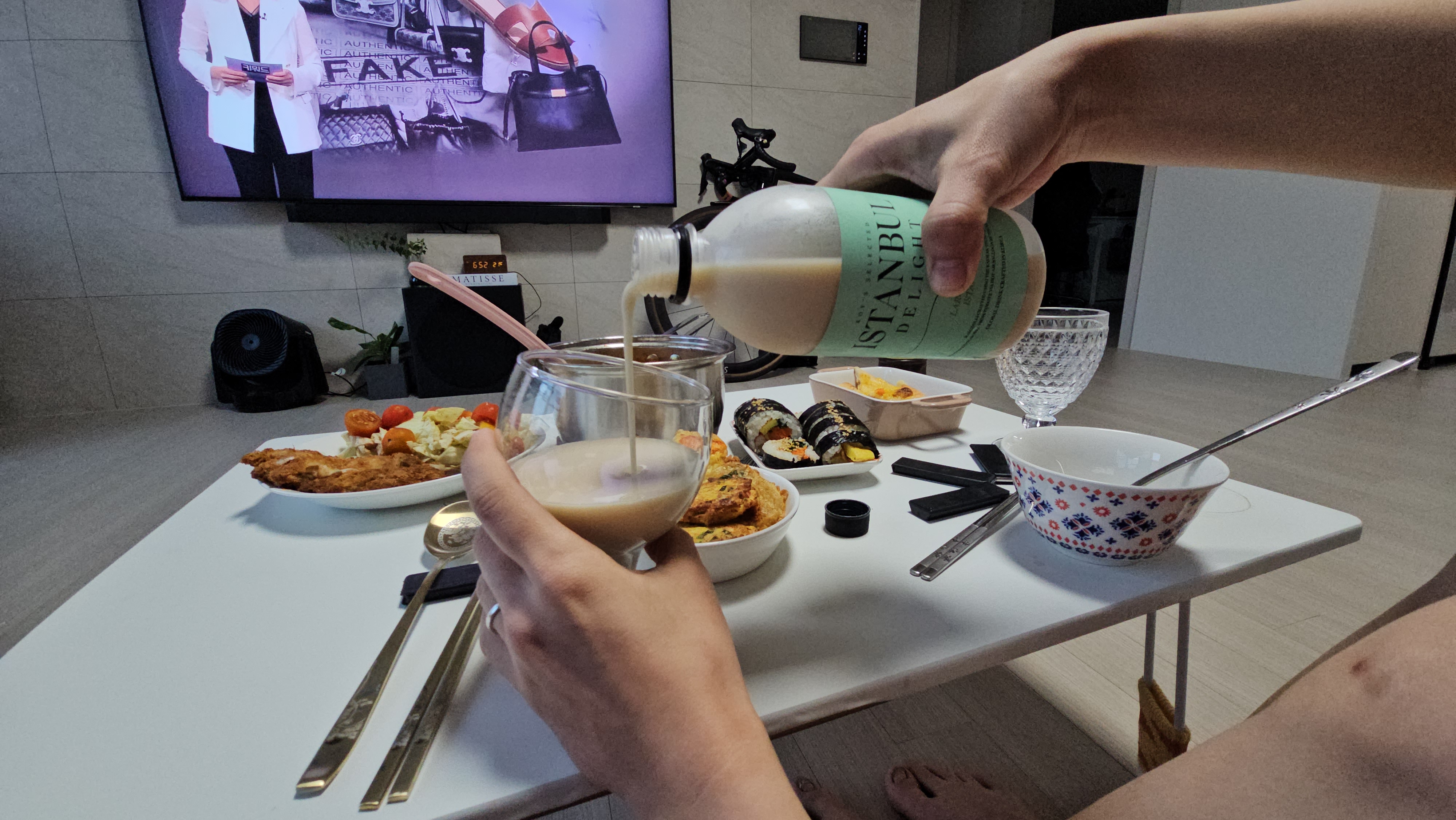 입에 닿는 순간 느껴지는 꾸덕한 질감과 크리미한 목넘김, 그리고 일반적인 막걸리에서 느낄 수 없는 깊은 바디감은 마치 디저트 와인처럼 즐길 수 있는 프리미엄 전통주 같았습니다. 특히 카이막 발효공법 덕분에 이 막걸리는 단순한 술을 넘어 하나의 요리처럼 느껴졌습니다.