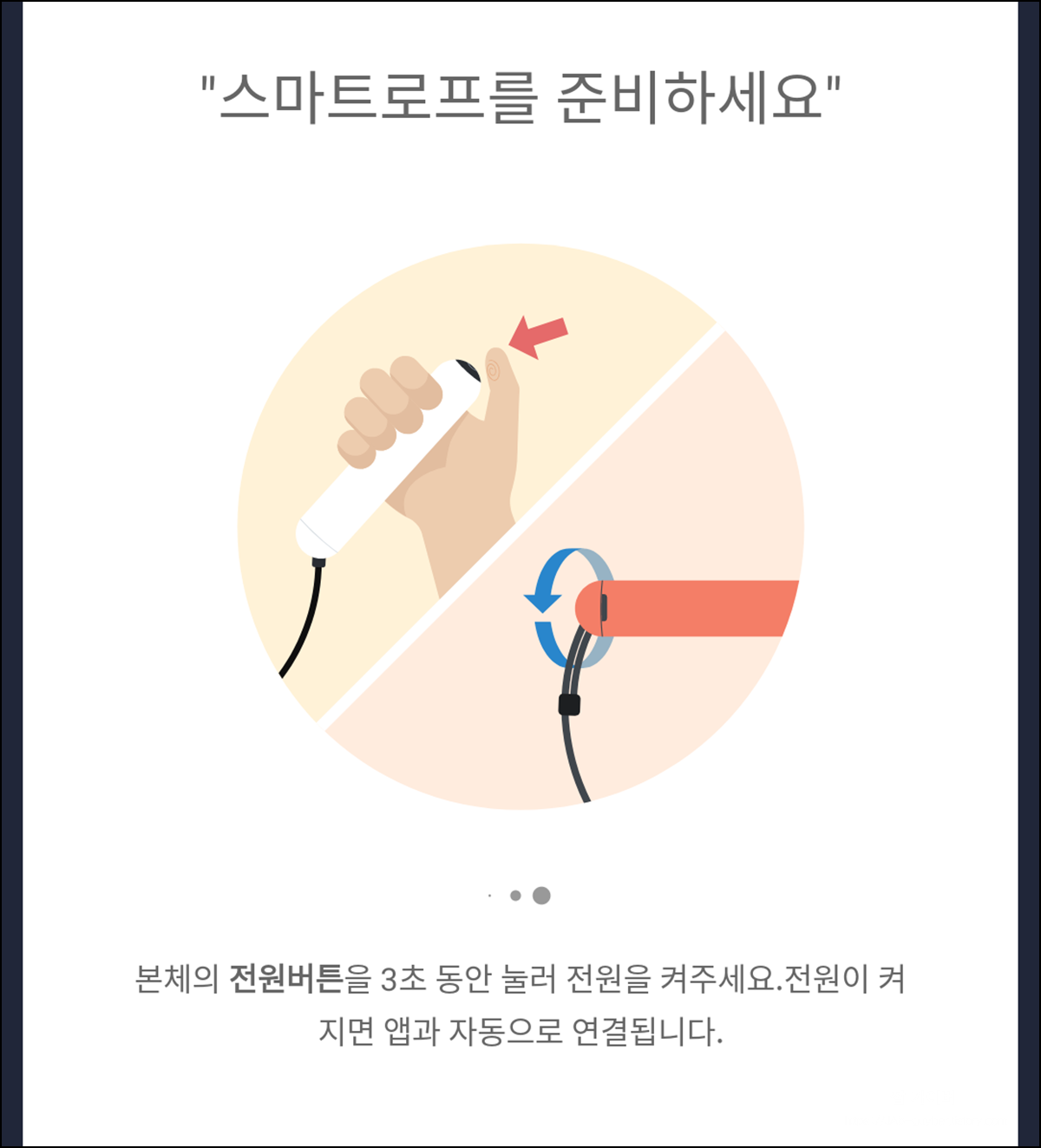 스마트로프를 페어링하기 위해서는 본체 전원버튼을 3초동안 눌러 주면 자동으로 앱과 연동이됩니다.