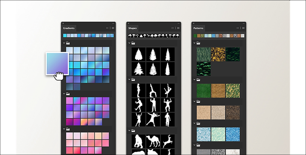 - 그레이디언트, 패턴 및 모양을 위한 전용 패널