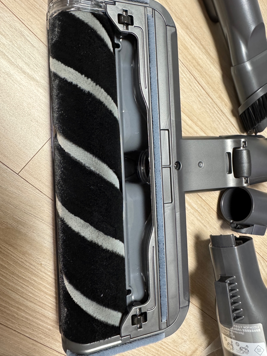 물걸레 흡입구를 장착한 상태에서 전원만 누르면 ‘물걸레 전용 모드’로 전환됩니다.