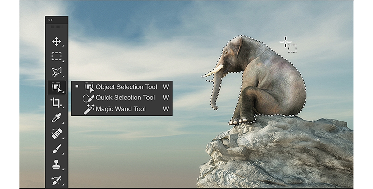 - 빠른 선택 및 자동 선택 도구와 동일한 그룹에 있는 Photoshop의 기본 응용 프로그램 [도구] 패널에서
