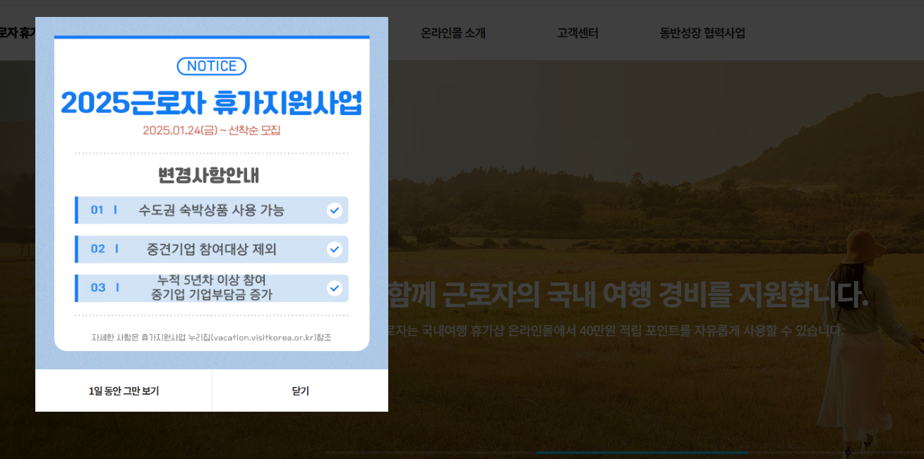 2025년 근로자 휴가지원사업 휴가비 지원금 신청방법