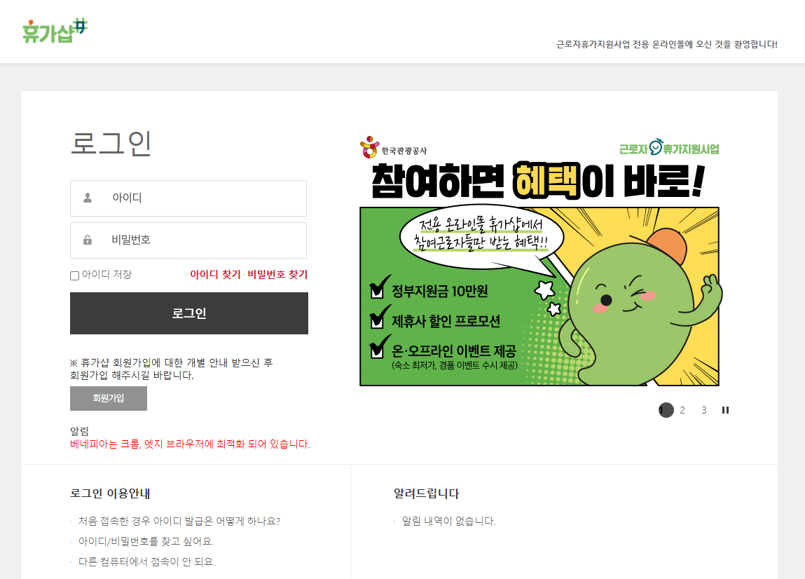 본 사업은 단순한 복지정책이 아니라, 근로자의 재충전과 국내 관광산업 활성화를 동시에 도모하는 전략적 프로그램으로 운영되고 있습니다.